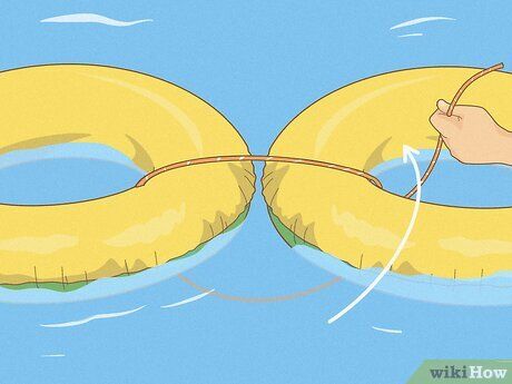 Thread the submerged rope through the hole of the second tube. Take the underwater end of the rope and pull it through the hole of the second tube you wish to connect. Once both ends of the rope meet between the tubes, tighten it securely.