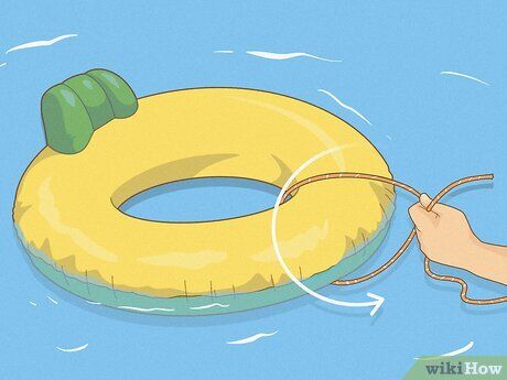 Pass the rope through the center hole of your tube. Hold one end of the rope firmly and feed it through the middle of your tube, allowing it to go underwater. Reach around the outside of the tube with your other hand to grab the submerged part of the rope.