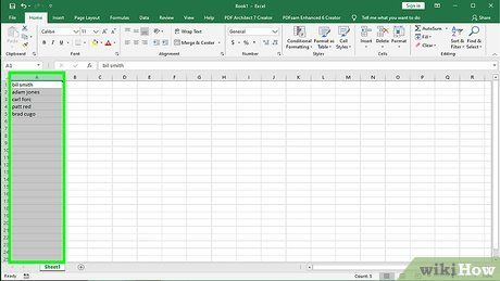Complete your list of names by ensuring all letters are in lowercase. Enter them into a single column. Leave an empty column to the right of the name list.