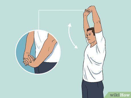 - If you can’t interlace your fingers, try holding a long stick with both hands shoulder-width apart. Gradually raise the stick overhead, keeping it parallel to the floor.