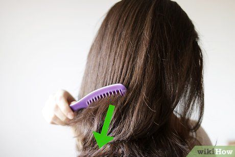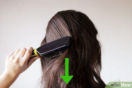 Prepare your hair. Brush your hair to remove tangles and loose strands. You can brush a section or all of your hair, depending on how much you want to include in the bun. If your hair is frizzy, dampen it with water.