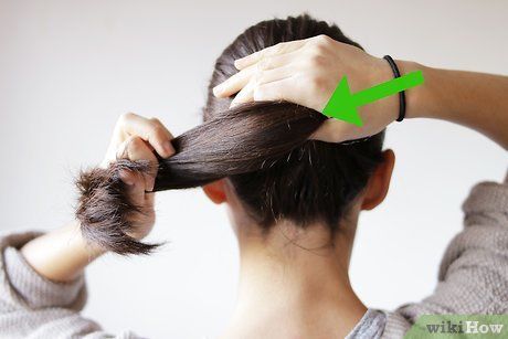 Gather your hair upward. Use your hands to collect all the hair from the front to the back, holding it at the crown of your head. Make sure no strands slip out of your grasp.