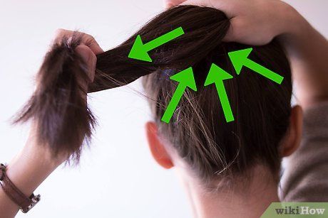 Wrap the ponytail around your fist. Use a hair tie to secure the hair bundle by wrapping it around three times. On the third loop, leave half to one-third of the hair out to form a tail, while the remaining hair forms the bun above the tail.