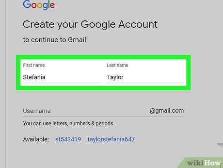 Create your username. In the "Username" field, enter the desired username for your email address. This name will appear before the "@gmail.com" part of your email address.