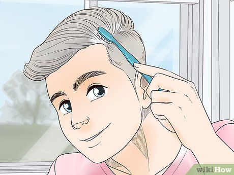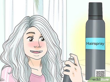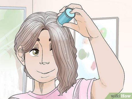 Apply gray hair spray to the top section of your hair. While holding the comb in place, spray a thin, even layer of gray or silver hair spray onto the top portion of the combed hair. For shorter hair, simply spray evenly across the entire head. Apply multiple layers for a more pronounced effect.