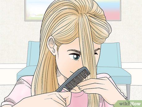Comb your hair with a wide-tooth comb. Use a wide-tooth comb to brush through your hair, then comb a section of hair to one side of your face, stopping halfway down the length of the hair.
