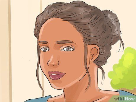 Find the style that suits you best. Try various hairstyles until you perfect your messy bun. Leave some hair out before gathering the rest into a ponytail. Once you've made the bun, divide the leftover hair into smaller sections, twist each part, and wrap them around the bun, securing each section with a bobby pin. Gently pull out some strands from the front and sides to create a playful or soft look. You can also pull the hair at the back of the bun to make it appear slightly loose and natural.