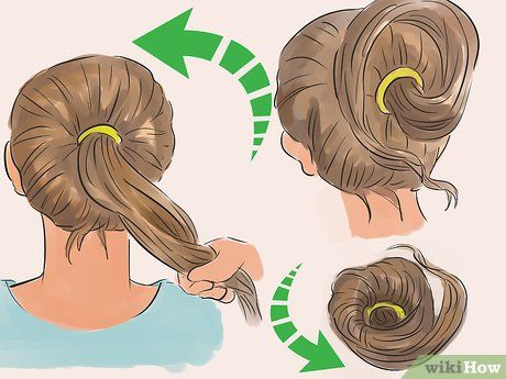 Forming a bun. Next, twist your hair like a rope and then wrap it around the ponytail holder, tucking the ends underneath the band. Alternatively, when forming your ponytail, on the final tie, leave a loop of hair that creates a voluminous bun.