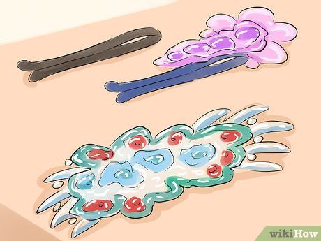 Add a unique, alluring, or intricate touch to your messy bun. Purchase some regular bobby pins, decorative flowers, hairpins with sparkling beads, or small clips with patterns, or other similar hair accessories. When shopping for these accessories, make sure to select elegant and refined items. (optional)