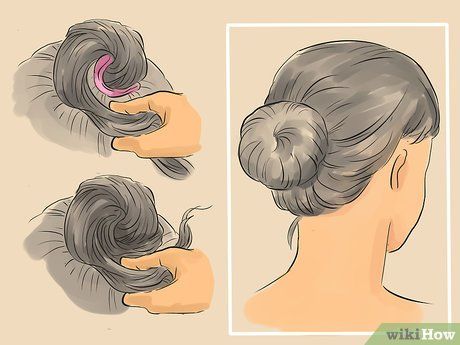 ballerina bun. Make the bun close to the head and secure it with the same elastic or add another one (alternatively, use bobby pins; this will help secure the style once finished).