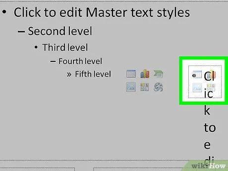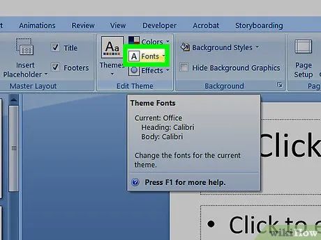 Click on the Slide Master tab. This option is found on the left side of the toolbar under the “Master Views” section. The Slide Master tab will open on the left side of the orange ribbon.