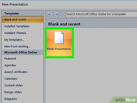 - On Mac, simply opening PowerPoint will automatically launch a new presentation based on your settings. In that case, skip this step.