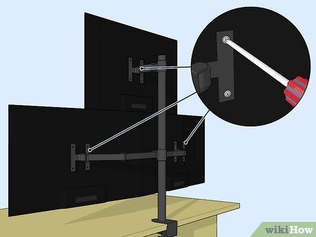 Attach your monitors to the stands as needed. Since monitor stands may have slightly different assembly instructions, follow the manual that came with your stand for connecting each monitor. Make sure to leave the monitors unplugged from their power and display cables to make rearranging easier.