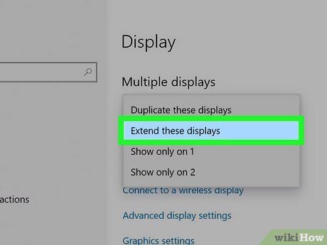 - Choose Extend desktop to this display. You may need to scroll down to find it under the "Multiple displays" section.
