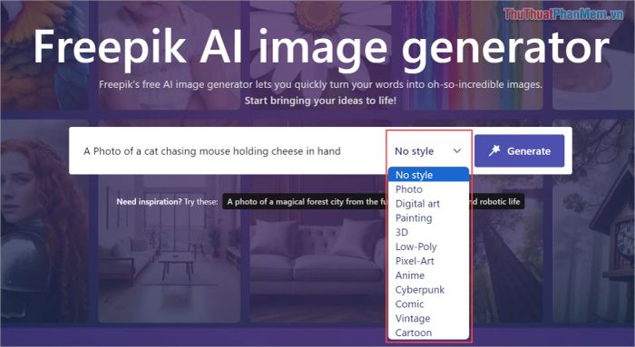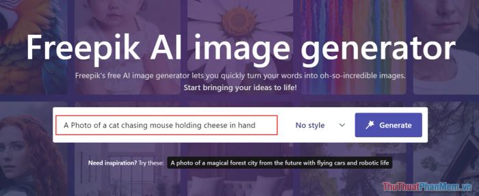 Note: Currently, Freepik does not support Vietnamese, which can be a challenge. However, you can use Google Translate to convert Vietnamese sentences into English and input them into Freepik. If it’s too difficult, you can write using main keywords separated by commas “,”.