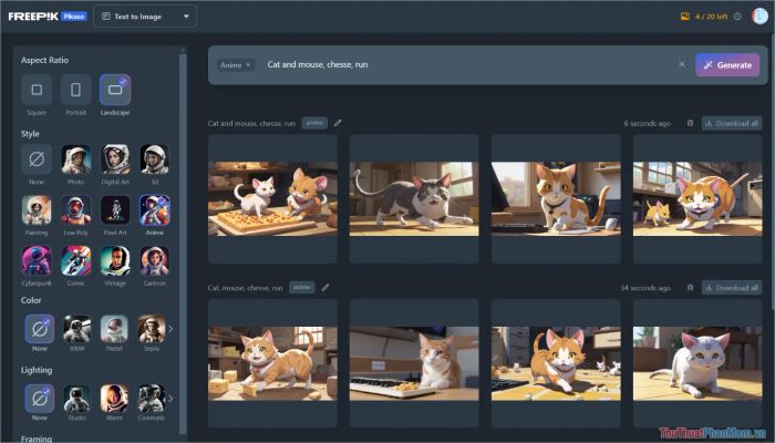 Freepik has long been recognized as an endless resource for young designers. On Freepik, users can access not only image resources, fonts, vector files, PSDs, but also an online AI image generation feature that doesn’t require downloading to your computer.