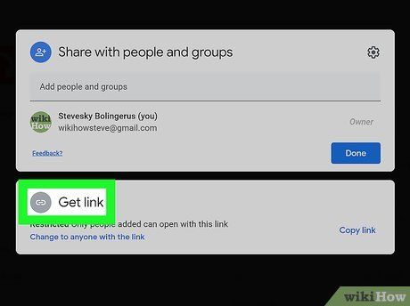 Copy the link. Above the permissions section, you will see a link. Click on it, then press Ctrl+C (or ⌘ Command+C on Mac) to copy the link. You may also click on the Copy link option.