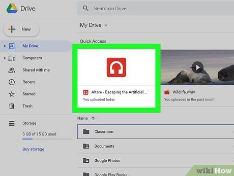 Double-click the MP3 file in Google Drive. After the MP3 file is uploaded, double-click it in Google Drive to open it.