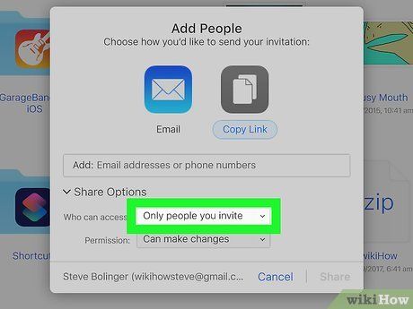 Click on the Share Options button. This is located at the bottom left corner of the window.