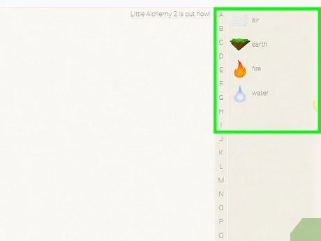 Drag the basic elements onto the screen. At the start of the game, you have 4 basic elements: earth, air, fire, and water. Drag these elements from the right sidebar onto the screen to begin playing.
