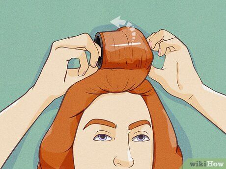 Roll the front sections of hair towards your face. If you have a part, roll the sections of hair outward from the part. Roll the sections in the back away from your face, towards the crown and nape of your neck. Create an asymmetrical curl pattern for a more natural look. For a more classic appearance, make smaller curls at the top and larger curls at the back of the head.