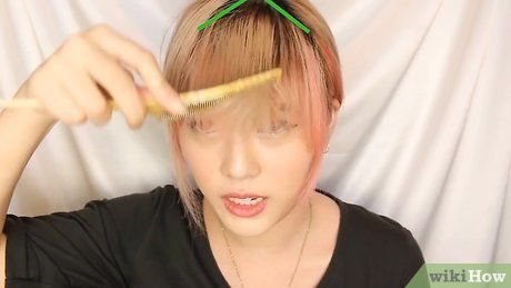 - Once the part is done, comb your bangs forward and pin the rest of your hair back, or secure it with a ponytail to keep the hair out of your face.
