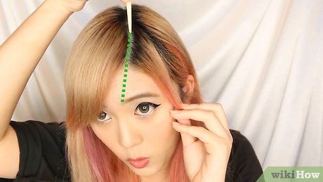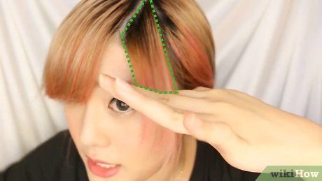 - After parting your hair, you’ll have a triangular shape with the pointed top a few centimeters above your hairline, and the sides of the triangle running along your temples.