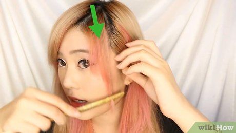 Locate the highest point of your eyebrow. Typically, this is the center or the most prominent point of your eyebrow, which will help you estimate the width of your bangs. If you're cutting new bangs, measure a line from the highest point of the eyebrow upwards to the hairline. Part your hair from the end of that line. Move the hair on one side of the part to the center of your forehead and pin the remaining hair back to separate your bangs.