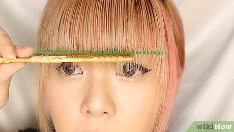 - Always cut your bangs longer than you intend at first. You can always trim them shorter later, but once you cut them too short, there’s no going back. Try trimming small sections, around 0.6 cm at a time, to prevent cutting them too short.