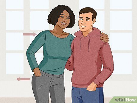 Practice the "leaning" technique. One way to minimize height differences, especially when wearing high heels, is to lean slightly in one direction by pushing your hips out. You will need to lean on your partner for support. Avoid walking with slumped shoulders. Instead, walk naturally, and this could even make you appear taller than your partner.