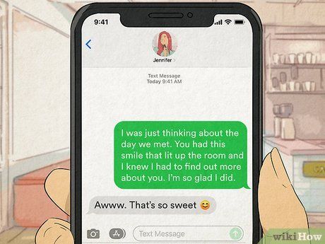 Make the moment unforgettable by adding special details. Do you recall how she looked when you first saw her or that special moment when you realized she was 'the one'? Send her a message about a memory you cherish, and she’ll feel deeply loved. You might text something like: