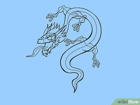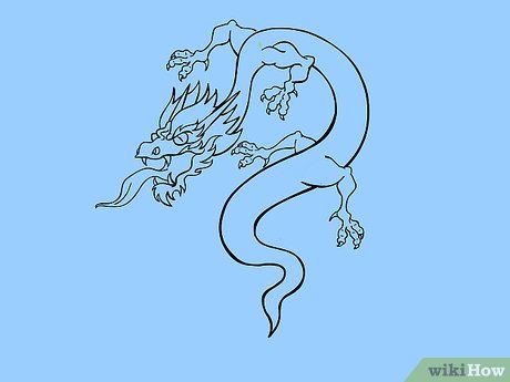 Sketch a line for the dragon's body, starting from the head and extending to the tail.