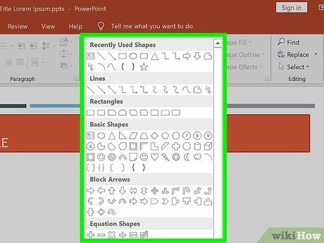 Choose a shape or line tool. On Windows, the list of shape or line options will appear to the left of the "Drawing" section in the toolbar. On Mac, both tool types will appear when you click on "Shapes" to the right of the unlabeled section.