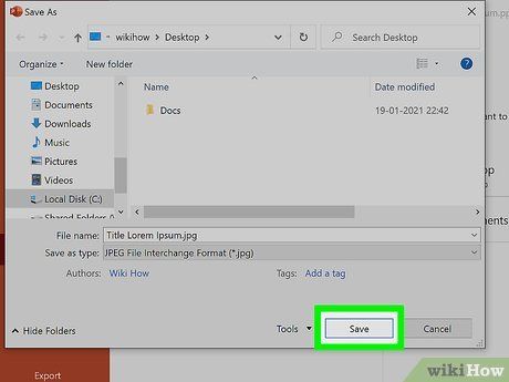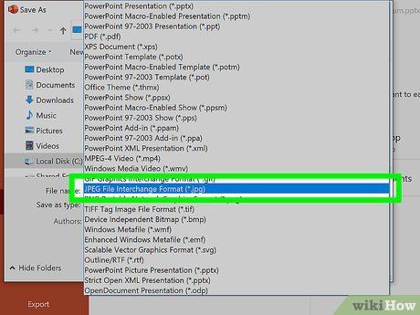 - If you're saving multiple slides as a file, the program will prompt you to select whether to export "All Slides" or "Just This One".