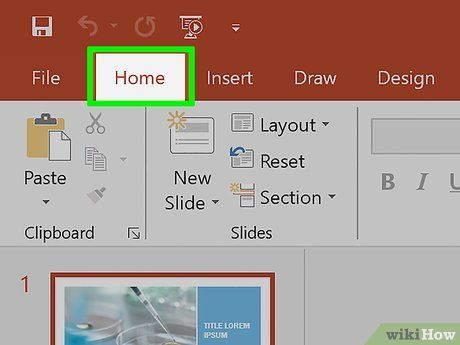 Select the "Home" tab in the top left. This tab is selected by default when you start a new document.