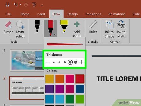 - You can also select preset color and size options from the menu to the left of the "Color" and "Thickness" dropdowns.