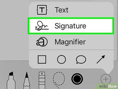 Tap on the + symbol. This icon is situated at the bottom right corner of the screen. Additional Markup tools will then be displayed in the menu.