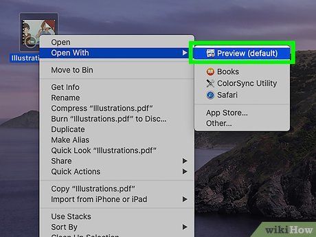 Open the PDF document in the Preview app. You can do this by double-clicking the PDF icon. Alternatively, double-click the blue overlapping photo icon, select File > Open, choose the PDF, and click Open.