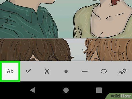 Tap on the Ab icon to open the text tool. This is the first option in the toolbar at the top of the screen.