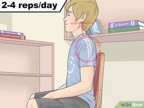 - Sit upright on a chair, preferably one with a straight back. You can also sit on the floor or stand, but maintain proper posture.