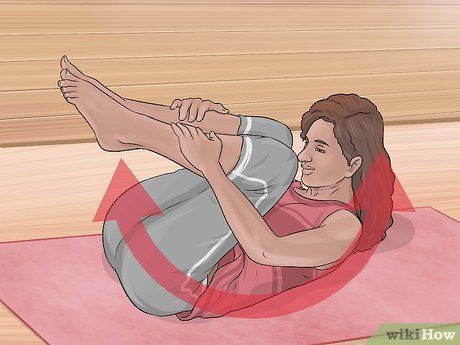 - Wrap your arms around your legs and gently roll back and forth to stretch your lower back.