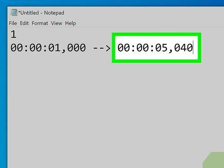 Type the end time of the subtitle. This is when the subtitle disappears. The end time should follow the format "[hours]:[minutes]:[seconds],[milliseconds]". The entire line containing the subtitle timing typically looks like this: 00:00:01,000 --> 00:00:05,040.