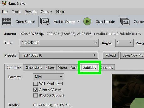Download and Install Handbrake. Handbrake is a free video encoding tool that supports embedding subtitles into videos. You can download Handbrake from