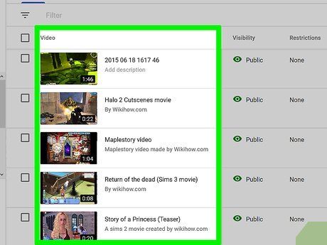 Click on Videos (Content). It is located in the left sidebar. This step displays all the videos uploaded to YouTube.