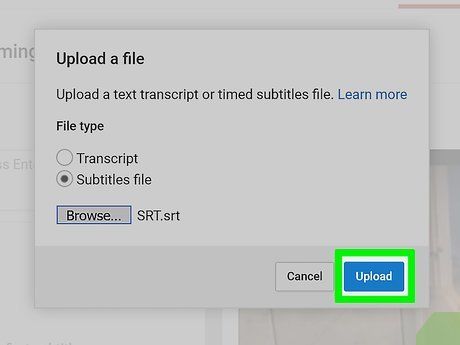 Click on Upload. This blue button is located at the bottom-left corner. This step uploads the subtitle file to your video. You can preview the subtitles in the video on the left.