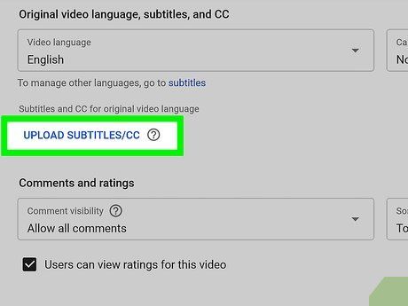 Click on Upload Subtitles/CC. This blue link is located below the Video Language dropdown menu.