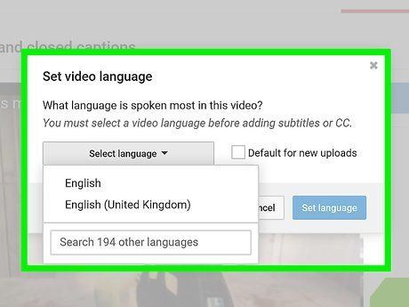 Select the language for the video. If you haven’t done this yet, use the "Video Language" dropdown menu to choose the video’s language. You won’t be able to upload subtitle files until the language is selected.