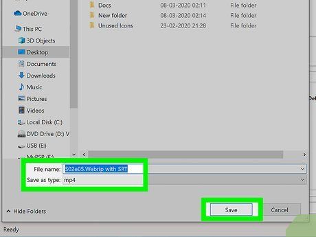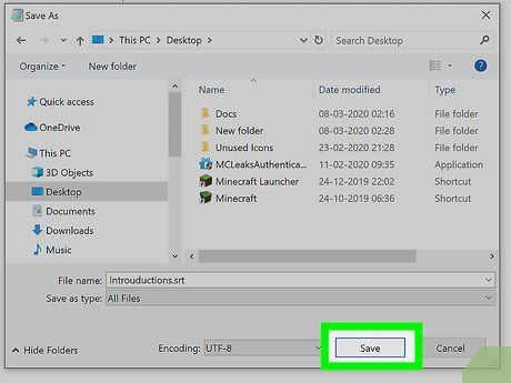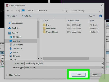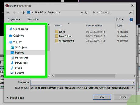 Navigate to the folder where you want to save the file. It is a good practice to save the SRT file in the same folder as the video you are subtitling.