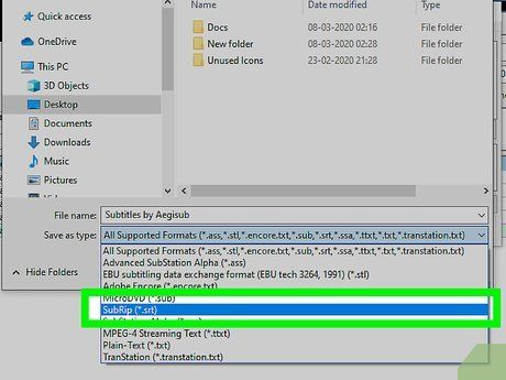 Select "SubRip (*.srt)". Use the dropdown menu next to "Save as Type" to choose "SubRip" as the file type. This step saves the subtitle file in SRT format.