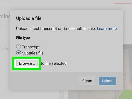 Select "Subtitle file" and click Choose file. Click the circle next to "Subtitle file" and then click Choose file. This step opens the file browser for you to select the subtitle file.